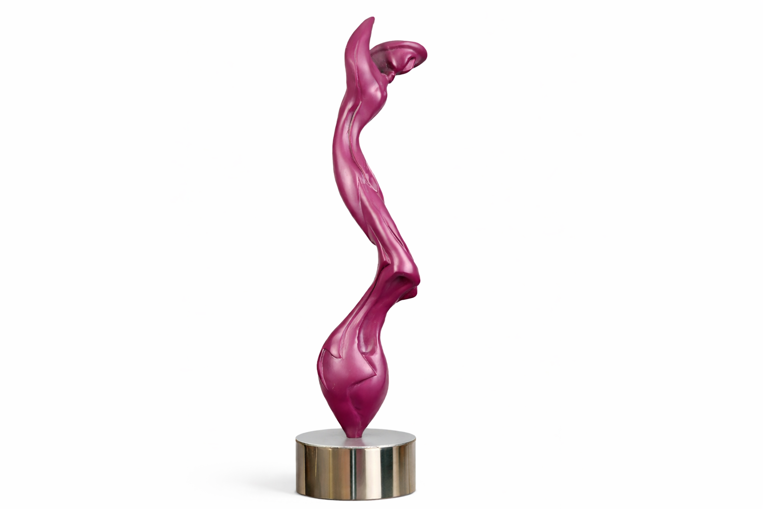 Crafted from plastic and stainless steel, the sculpture reflects light beautifully while maintaining a bold, architectural presence.