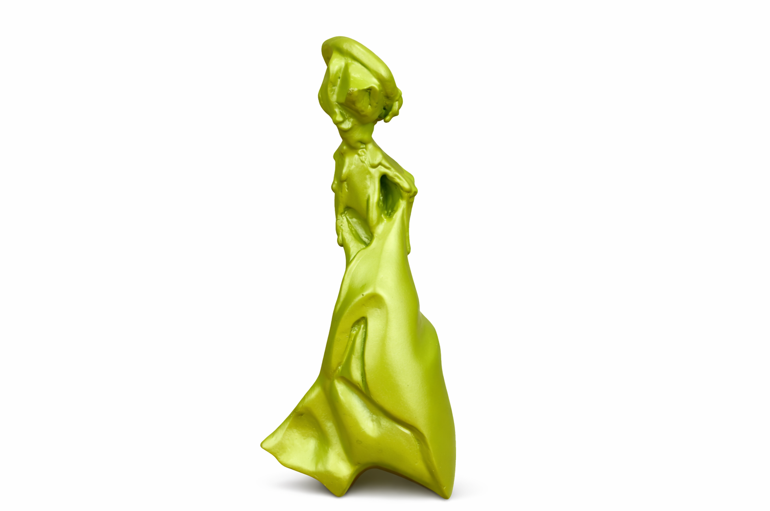 Crafted from plastic with a smooth sculptural finish, the piece balances modern materiality with figurative storytelling.